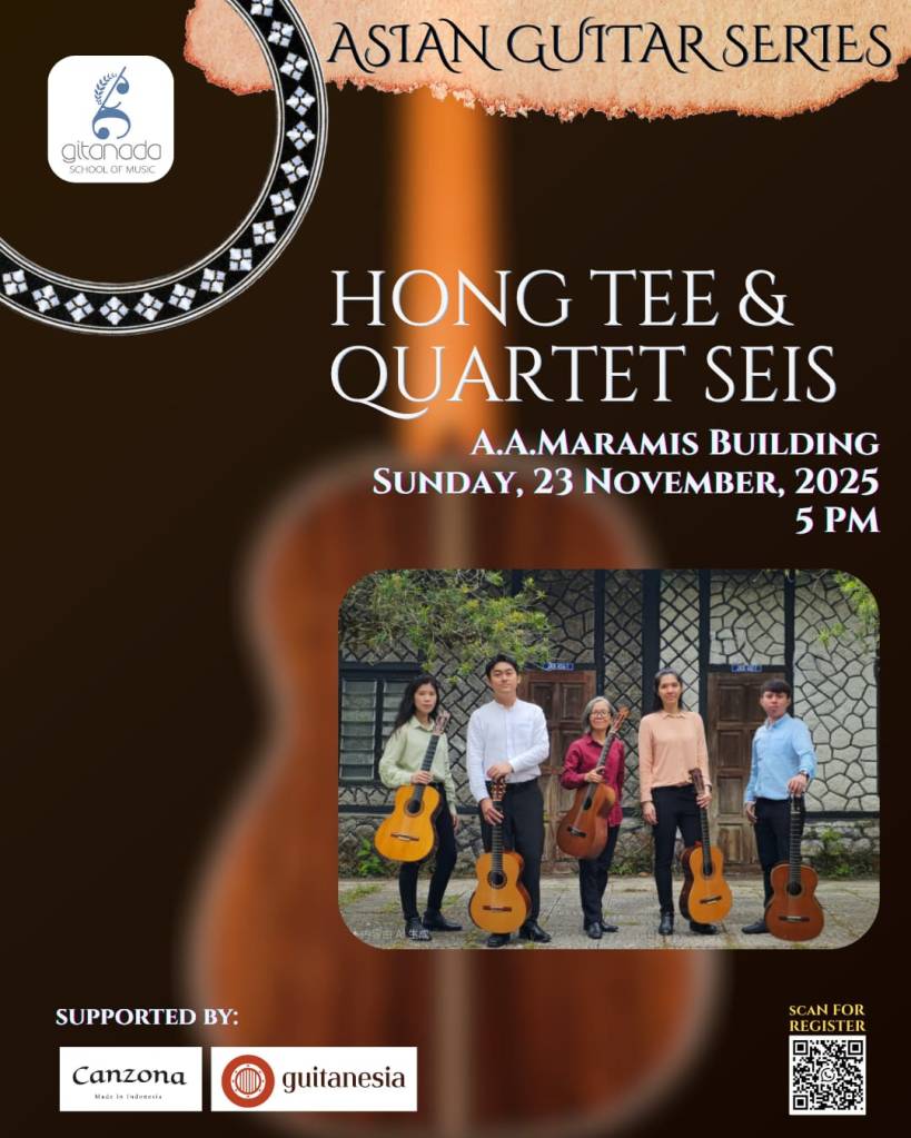 Quartet Seis is a Malaysian classical guitar ensemble established in 2022 under the leadership of esteemed guitarist and educator, Hong Tee. Recognized as one of the nation’s few, and perhaps the only, actively performing guitar quartets, Quartet Seis has rapidly distinguished itself within Malaysia’s classical music scene.